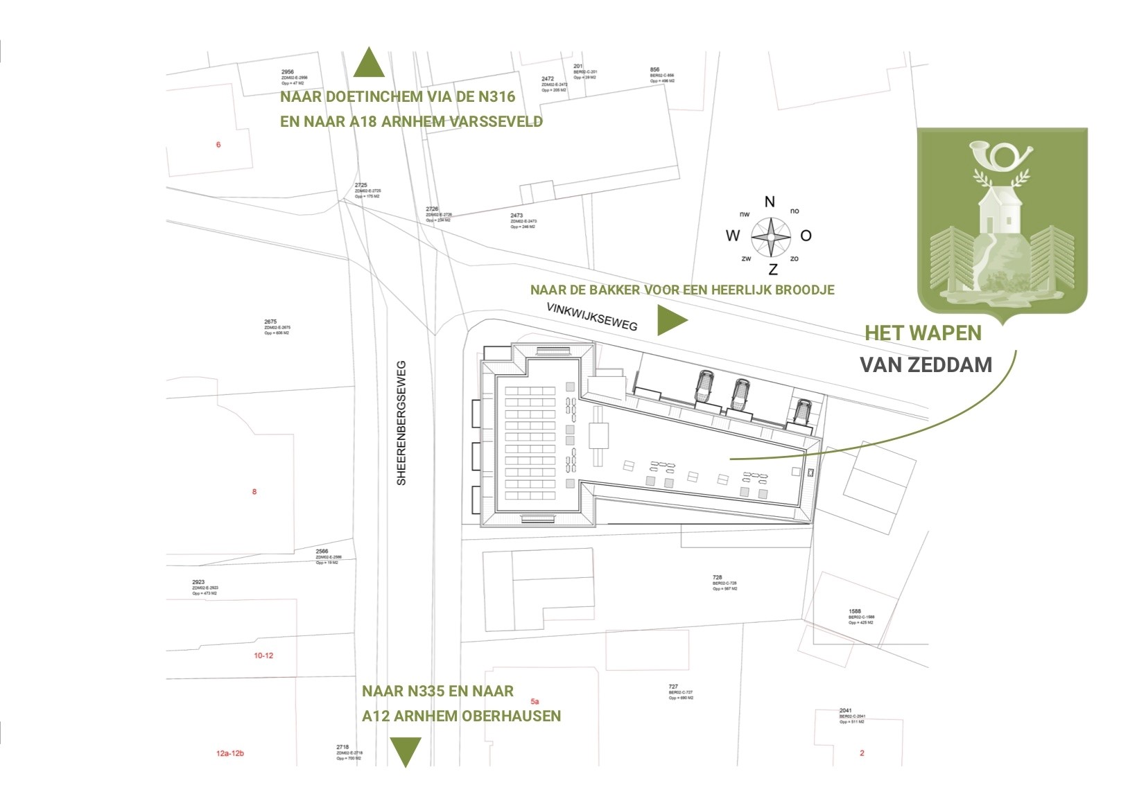 ’t Wapen van Zeddam ligt op de hoek van de ’s-Heerenbergseweg en de Vinkwijkseweg – midden in het dorpshart. Binnen één minuut wandel je naar het Gerrit Varwijkplein voor je dagelijkse boodschappen. Ook winkels, horeca en scholen liggen op loopafstand. Met de auto ben je in 12 minuten in Doetinchem.
