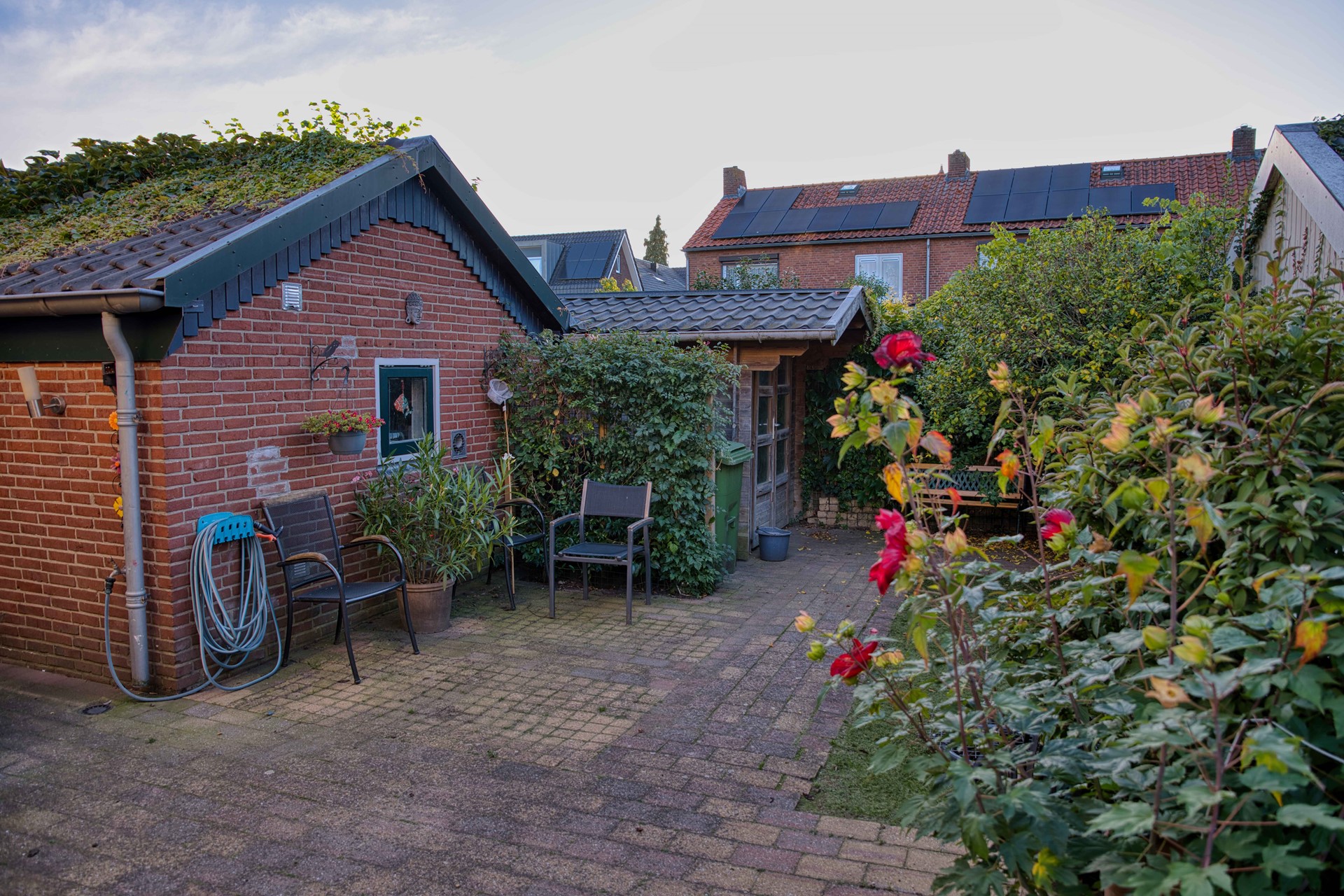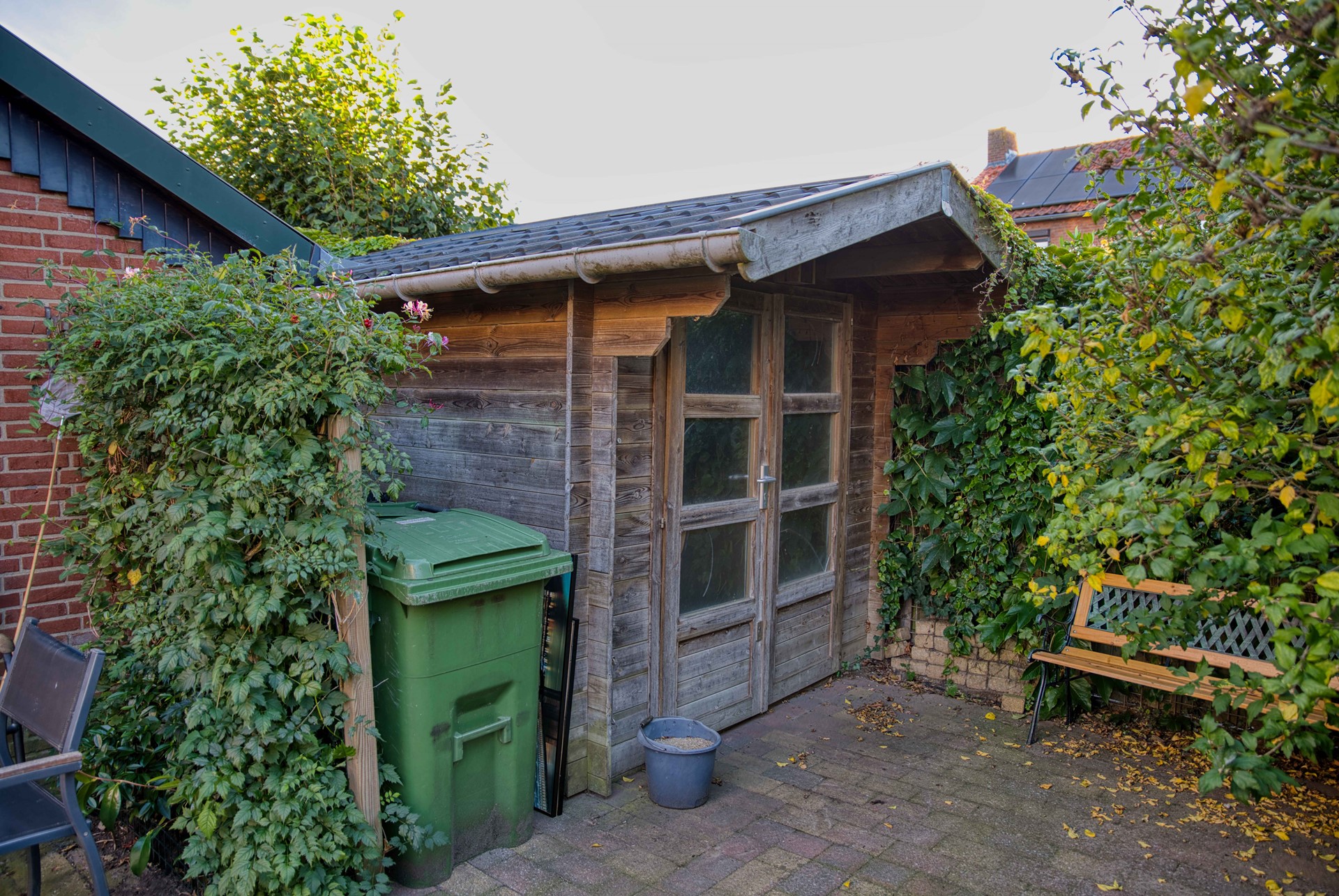 De woning beschikt over een ruime achtertuin (112 m²) en voortuin. Daarnaast is er een grote vrijstaande schuur met water en elektra.